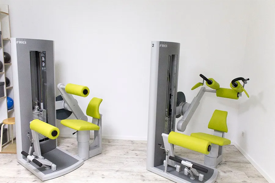 In kleinen Gruppen mit maximal drei Personen trainieren Sie an modernen medizinischen Trainingsgeräten. Unsere Therapeutinnen begleiten Sie dabei, um Bewegungsabläufe zu verbessern, Muskulatur gezielt aufzubauen und die allgemeine Fitness zu steigern.